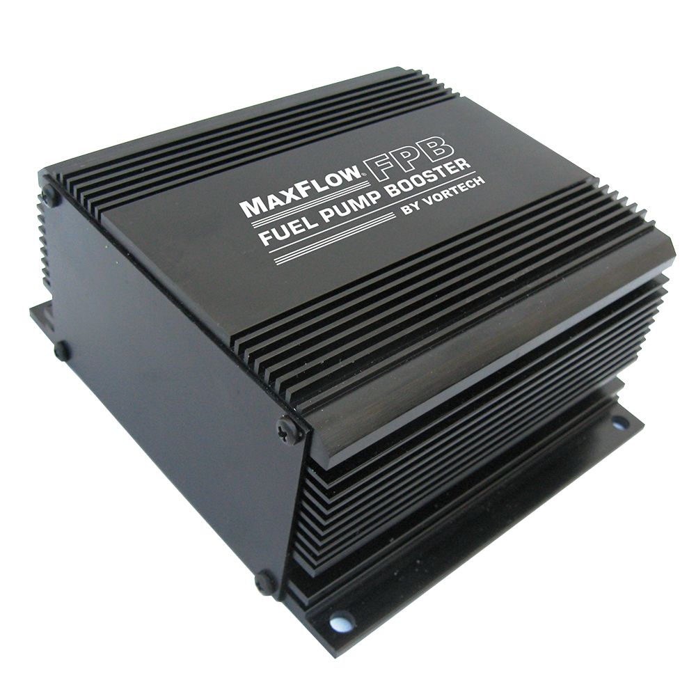 Maxflow Fuel Pump Booster, Pre-Programmed for various applications, including 2011-2014 5.0L Mustang GT, 2010-2012 Gen. 5 Camaro SS, and 2006-2010 Dodge/Chrysler/Jeep SRT8. Allows desired voltage output curve to fuel pump to be set. Installation wires and components included.